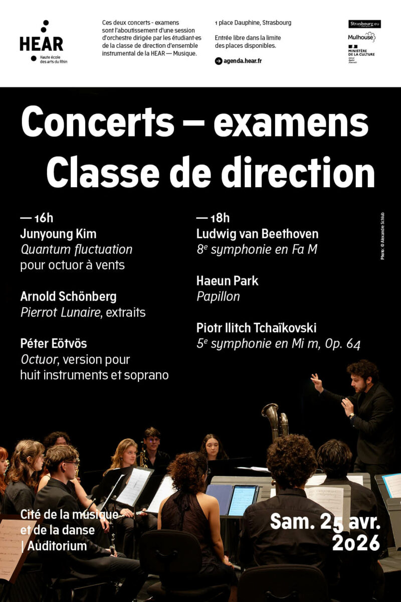Ces deux concerts-examens sont l’aboutissement d’une session d’orchestre dirigée par les étudiant·es de la HEAR-Musique de la classe de direction d’ensemble instrumental